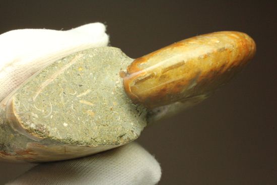 北海道が世界的にも有名な理由はノジュール(団塊)にあります。ノジュールとは、炭酸カルシウムを主成分とした硬い岩石の塊です。北海道産のアンモナイトは、多くの場合このノジュールに守られ、浸食を受けずほぼ完全な殻のままで保存されています。