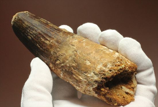 | 学名 | 極厚、激重(150gオーバー)で抜群の存在感!これぞスピノサウルスの巨大歯化石(Spinosaurus) |