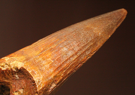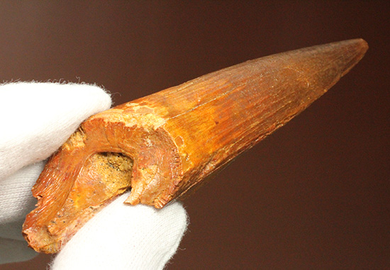 | 商品解説 | 質良し、形状良し、状態よし!真っ直ぐ伸びたスレンダーなスピノサウルス(Spinosaurus)歯化石が登場です。 表面のシワが保存されており、ルート部の様子もよくわかるのが特徴です。 |