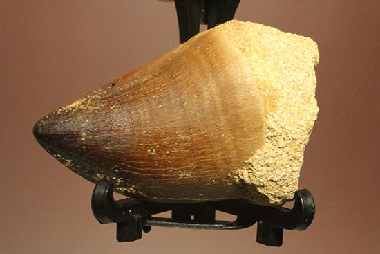 比較的多く歯の化石が出回っているが、偽造品(母岩に歯を埋め込んだものが多い)も出回っているため注意が必要です。また、出土・保存状態によって品質はさまざまです。表面がエナメル質を保ち、かつルート(根元)が太いモササウルスの歯化石は意外に数が少なく価値が高いと言われています。