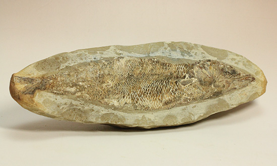 ブラジル産の魚化石。現世に生息する硬骨魚類(こうかくぎょるい)と同じ仲間。