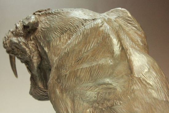 サーベルタイガーとは対象的な正確で、やさしくちょっぴり臆病者。キバもほとんど使うことなく、ヒゲを使って海底を散策、貝やエビをあさっています。