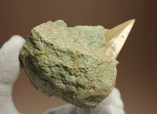 母岩から、ニョキと飛び出た凶暴歯!ネズミザメ目新生代の古代ザメ、オトダスの歯化石の登場です。