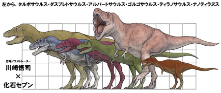 恐竜コレクターの永遠のアイドル、ティラノサウルスにも同じタイプの仲間が世界各地に沢山いました。ここで簡単に紹介しましょう。