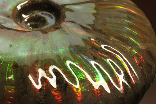 本標本は深い肋のラインに沿って多彩な色を放つ輝きの美しいアンモナイトでした。化石のコレクション、これからもお楽しみいただければ嬉しく思います。ありがとうございました。