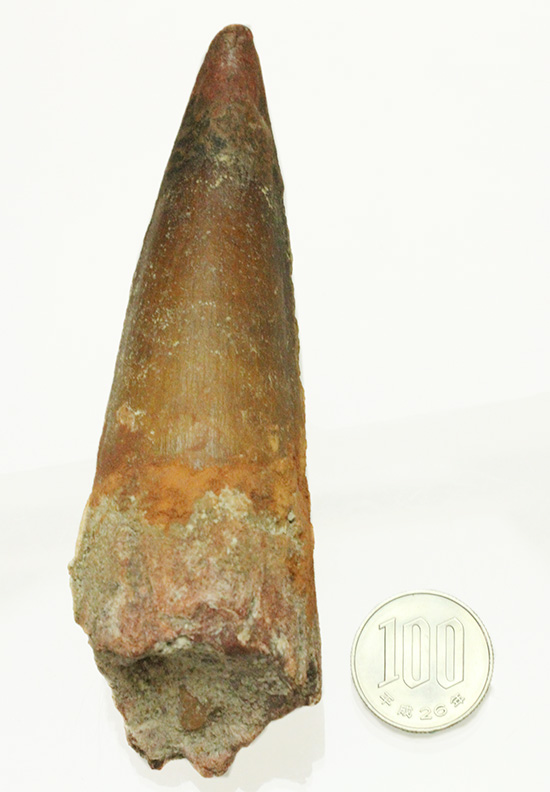 スピノサウルスの巨大歯化石をアップしました。極太歯です!