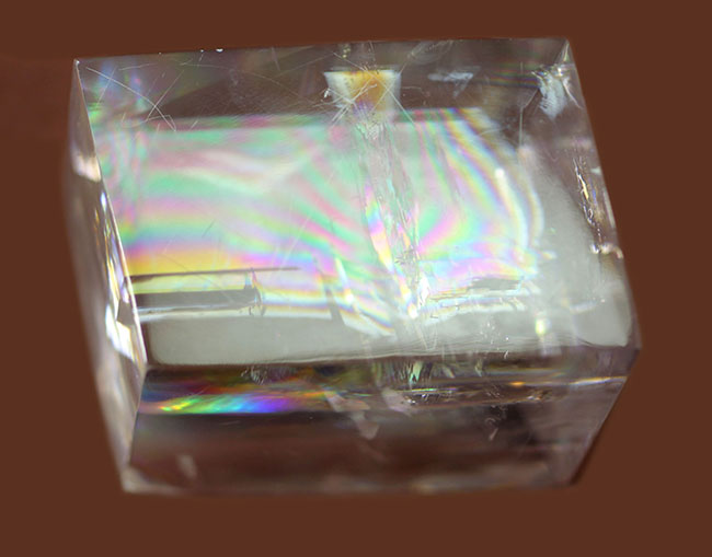 新着アイテム こんなにクリアーなのに見通せない。不思議な鉱物、レインボーカルサイト(方解石)天然結晶