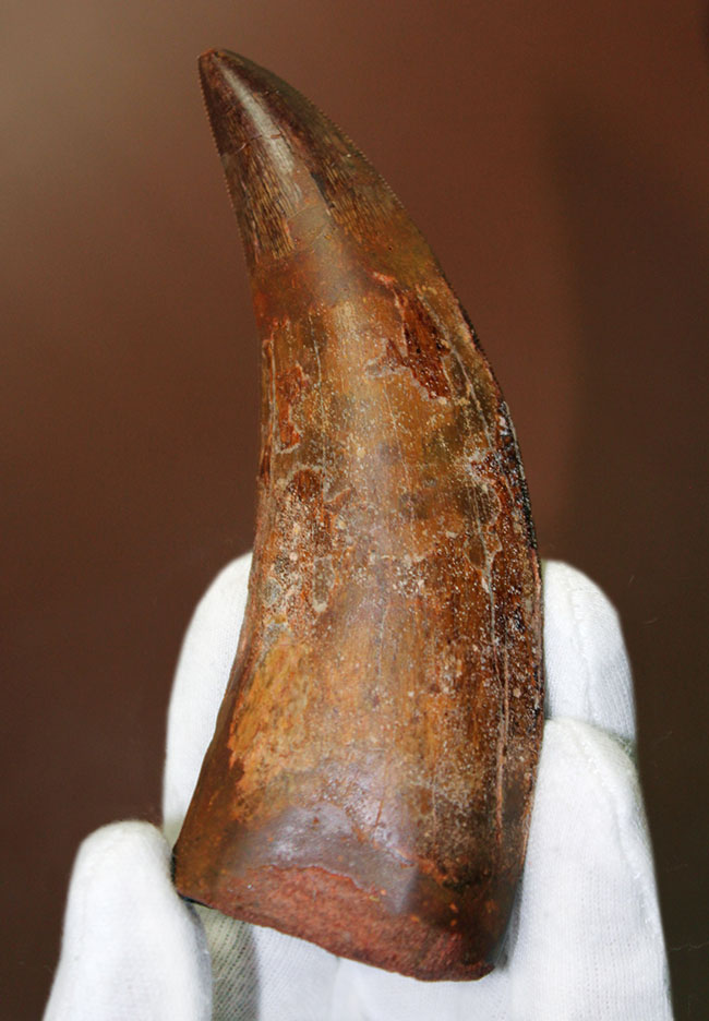 規格外の12.8cmの巨大歯化石が登場です!カルカロドントサウルス(成体)の巨大美歯化石をアップしました。