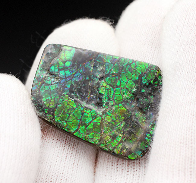 - 新着アイテム 宝石にも認定された圧倒的な輝き!鮮烈なグリーンがきらめく、ハイクオリティ アンモライト(Ammolite)縁部ブロック