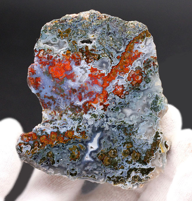 赤とグレイッシュブルーの組み合わせが美しい、ストロマトライト含有メノウ(Agate)をアップしました。