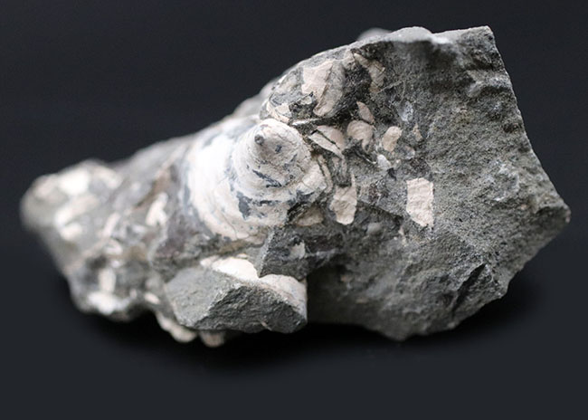 新着アイテム 北海道産の白亜紀の巻き貝といえば、これ、アニソマニオン・カシダリウス(Anisomyon cassidarius)
