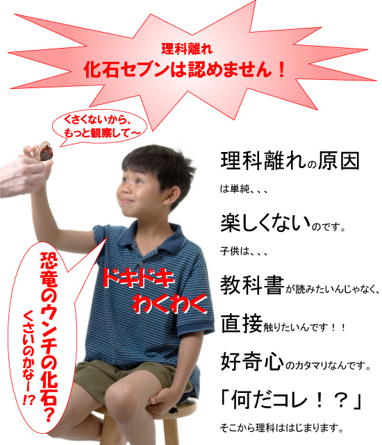 化石セブンでは、教育機関の関係者様にも多く支持していただき、特に以下の標本等は理科の授業や