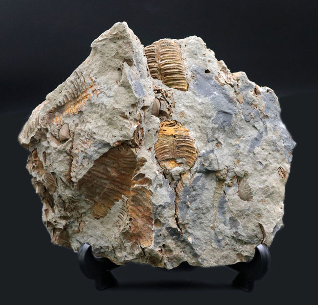新着アイテム なんとダブル!完品+頭部のみの部分化石、合計二体のクロタロセファルス(Crotalocephalus gibbus)が揃った、極めて珍しい群集化石