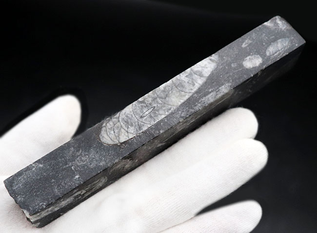 新着アイテム ペーパーウェイトとしても使用が可能!頭足類の仲間、オルソセラス(Orthoceras)の化石