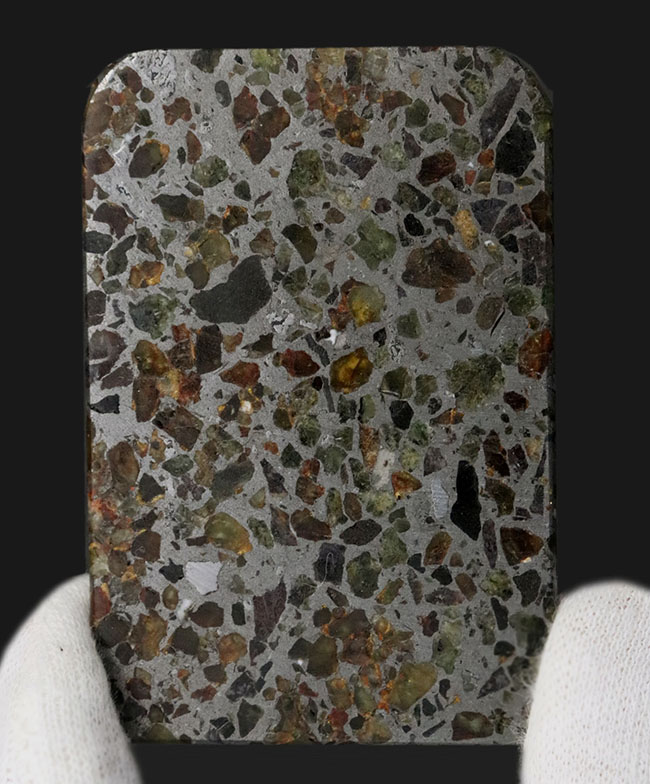 新着アイテム 宇宙はるか彼方より飛来した、希少な石鉄隕石、ケニア産パラサイト。カード型にカッティング