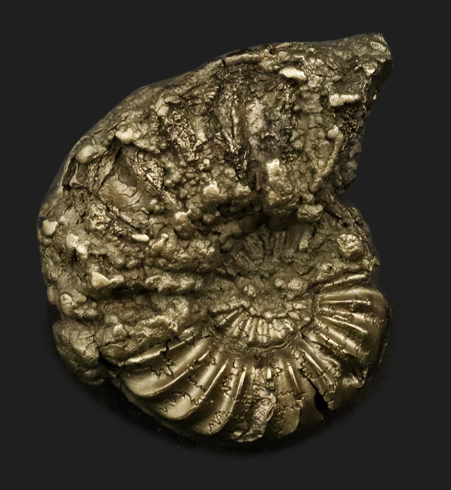 螺旋階段のようなダイナミックが肋(ろく)が特徴的な、ドイツ・ブンデンバッハ産の黄鉄鉱化アンモナイト、プロウロセラス(Pleuroceras)の化石をアップしました。