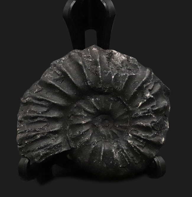新着アイテム 深く尖った肋(ろく)が特徴的!全形が保存された、ペルー産の黒褐色のアンモナイト、ユーブラノセラス(Eubranoceras)