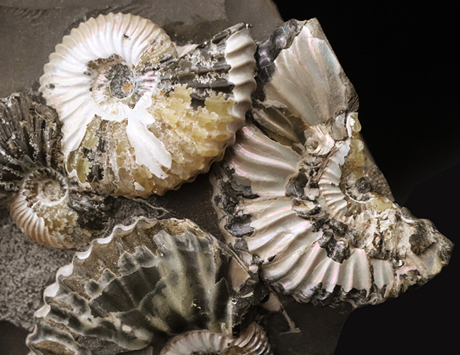 レア!白亜紀前期アプチアン期の地層からのみ産出する、希少なアンモナイト……デシャエシテス(Deshayesites deshayesi)の群集化石をアップしました。