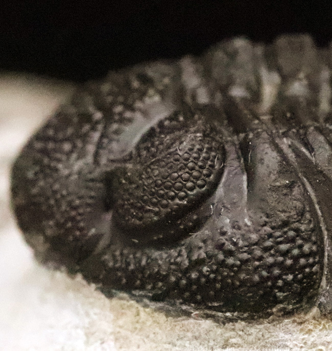 複眼の保存状態が圧巻!めったに出会えないレベルの精緻なクリーニングが施されたデボン紀の三葉虫、ペディノパリオプス(Pedinopariops)。モロッコ現地の専門工房が手掛けた、一級標本をアップしました。