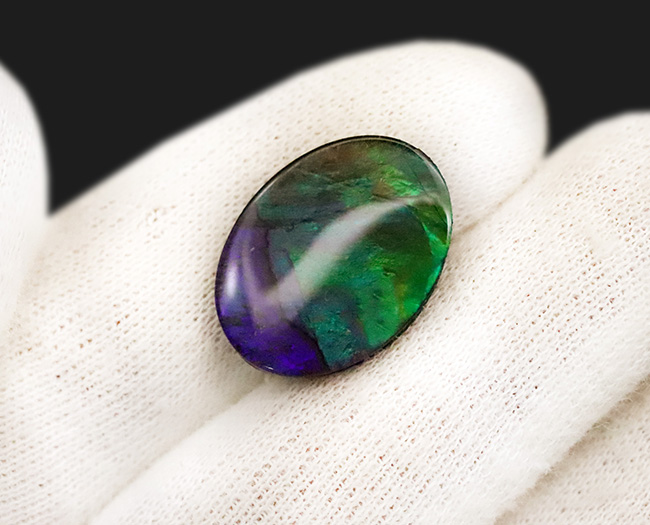 新着アイテム 希少色のブルー&パープルを呈します!カナダ・アルバータ州の大地が生んだ、生物起源の希少な宝石……アンモライト(Ammolite)のカボション