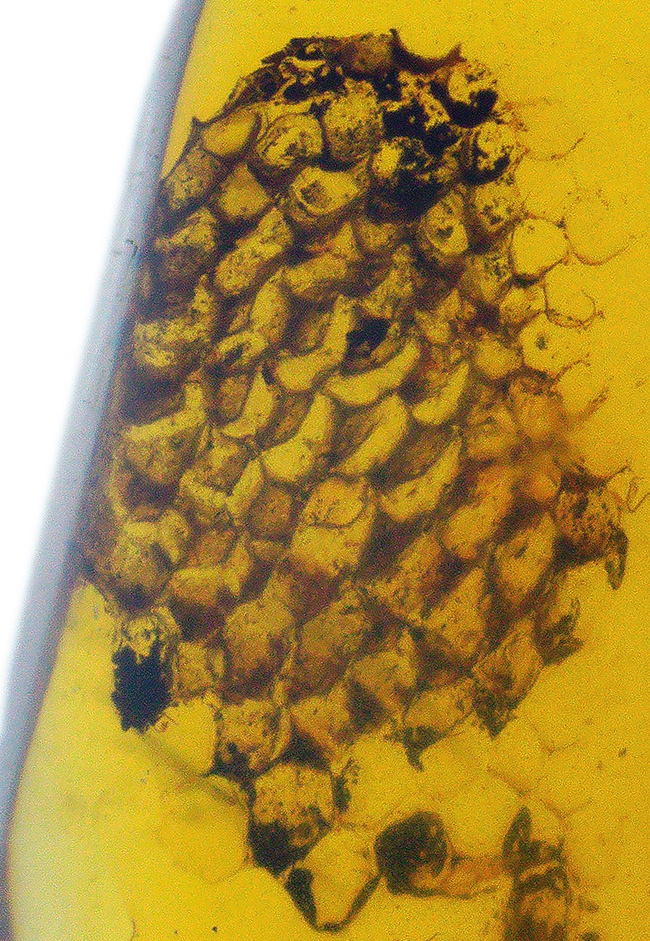 この一粒の琥珀に、巨大なロマンが内包!明瞭な凹凸が残された、爬虫類の鱗片が眠る、約1億年前の琥珀、バーマイトです。希少なトカゲの鱗が内包されたバーマイト(Burmite)をアップしました。