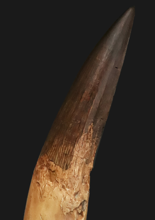 コレクショングレード!サイズあり、保存状態良好、良形と三拍子揃った、非常に美しい、スピノサウルス(Spinosaurus aegyptiacus)の歯化石をアップしました。