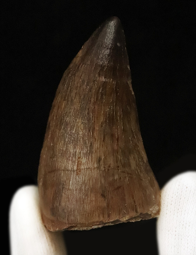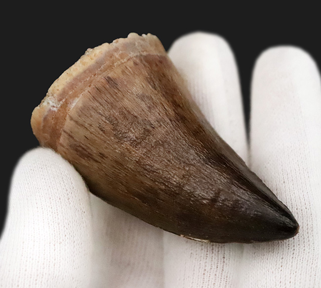 新着アイテム 周長103ミリという“トンデモナイ厚み”! さらに、抜群の保存状態を誇る、まさに一期一会の逸品……モササウルス(Mosasaurus)の歯化石。最強のモササウルス類、プログナソドンの可能性大!