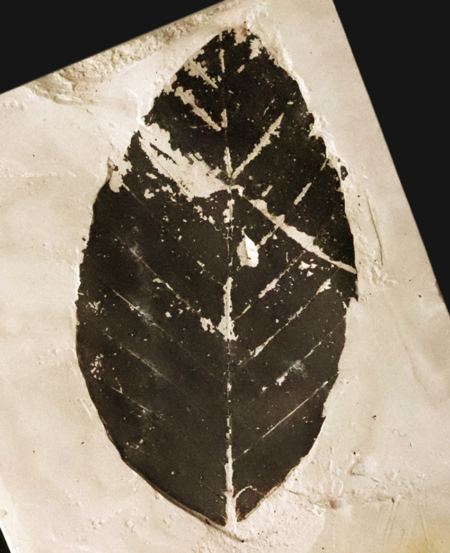 - 新着アイテム 黒く炭化して輪郭が残った珍しいタイプ!秋田県田沢湖産、ブナ類と思しき木の葉の化石