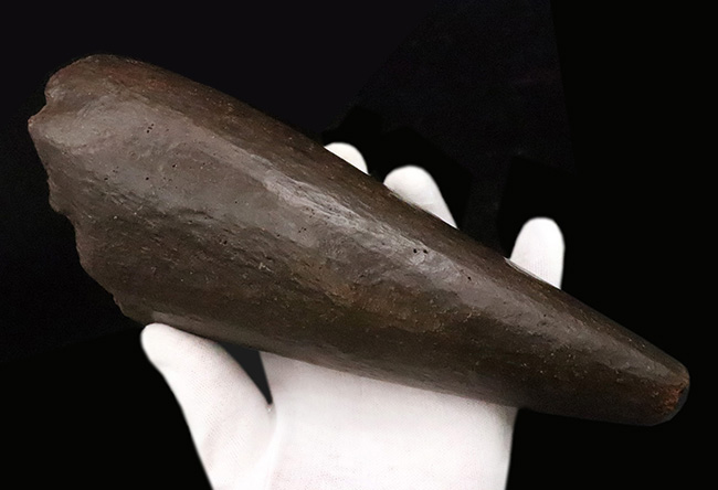 新着アイテム 周長7センチ、分厚い!歯冠を覆うエナメル質がよく保存された、モササウルス(Mosasaurus)の歯化石