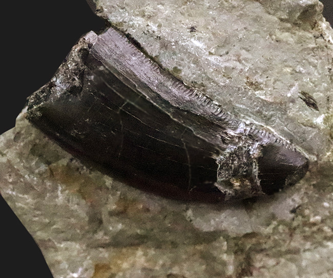 獣脚類化石コレクターのマストアイテム!モリソンブラックをまとった、極めて美しい、アロサウルス・フラギリス(Allosaurus fragilis)の母岩付き歯化石をアップしました。