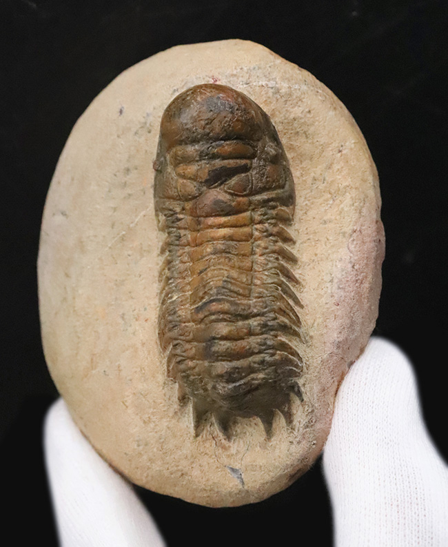 新着アイテム このキャタピラーのような重厚な体節、側棘にご注目!モロッコ・デボン紀層の三葉虫、クロタロセファルス・ギブス(Crotalocephalus gibbus)