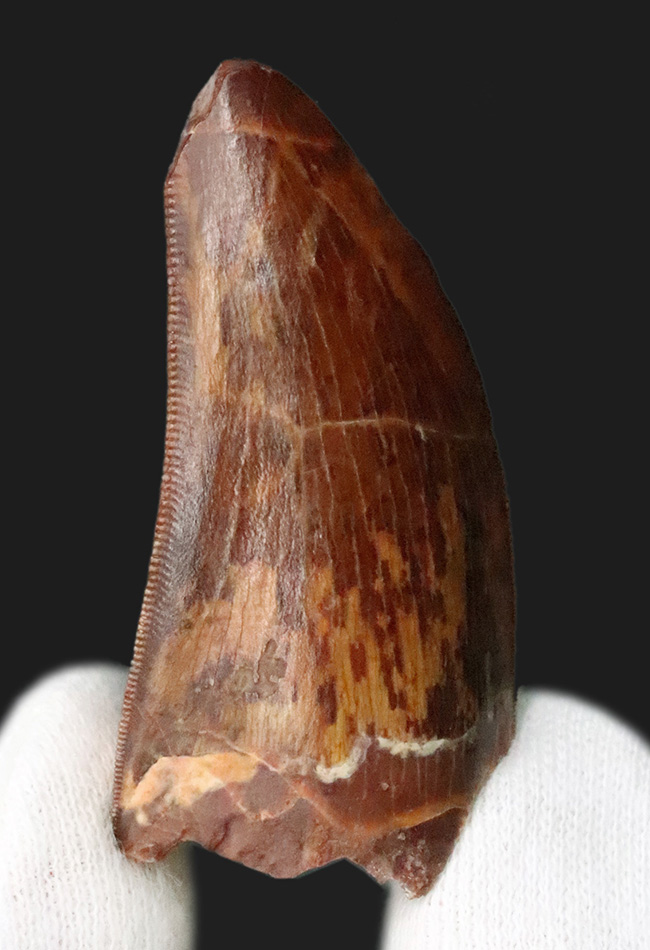 このセレーションは屈指の保存状態!【極厚・高保存】北アフリカの雄カルカロドントサウルス(Carcharodontosaurus saharicus)の歯化石をアップしました。