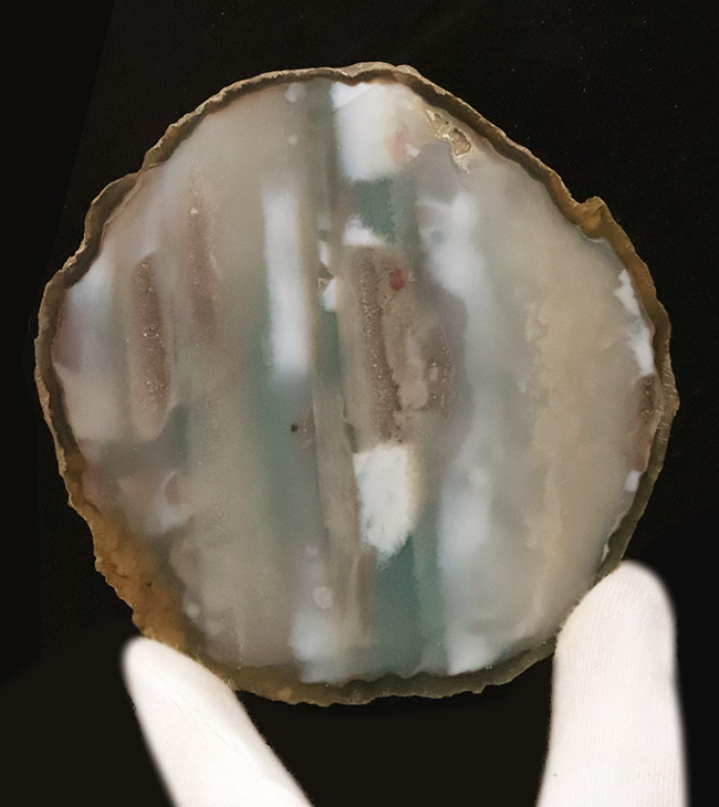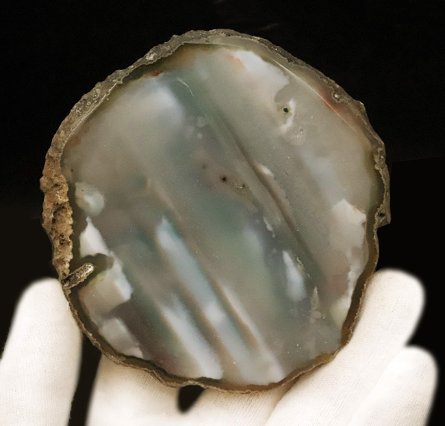 - 新着アイテム 複雑な緑が魅力的……薄くカットされた大判、瑪瑙(メノウ)のスライス標本