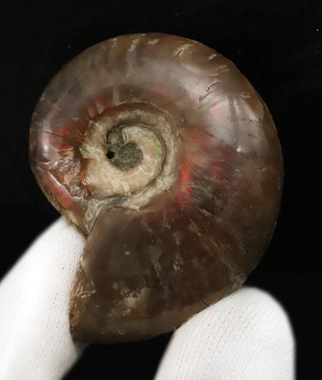 赤い遊色が保存されたマダガスカル産のアンモナイト、クレオニセラス(Cleoniceras)をアップしました。