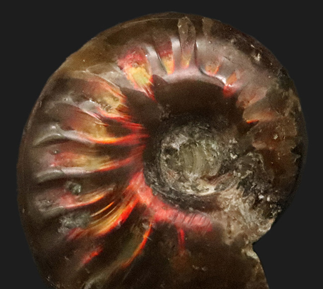 新着アイテム 真紅の輝きを放つ、マダガスカル産遊色アンモナイト、クレオニセラス(Cleoniceras)