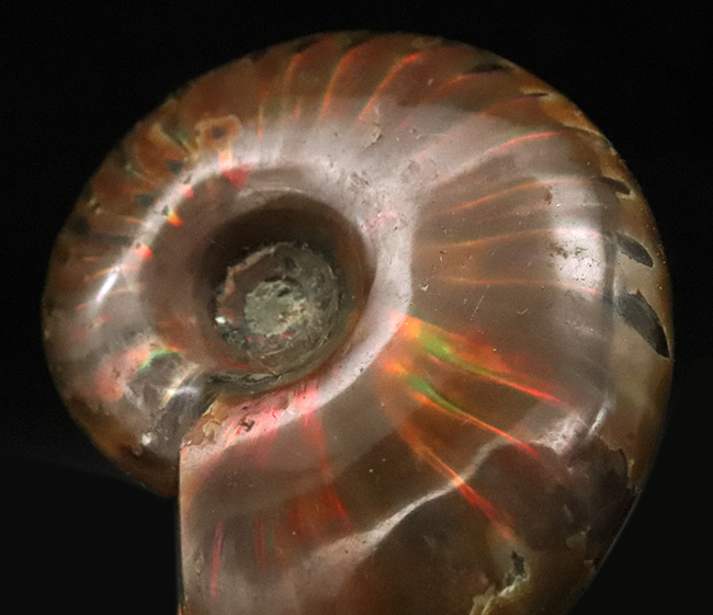 鮮やかな赤いラインが目を引く、マダガスカル産・遊色アンモナイトの代表格「クレオニセラス(Cleoniceras)」の良質個体をアップしました。