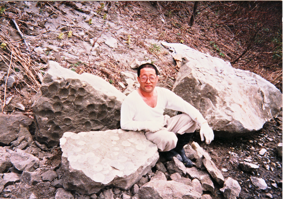 恩師、久米先生との化石採集は自然にとけ込み、命の尊さや人としての生き方を学び、愛妻、ヒサエさんとチビちゃんとの採集には、自然と戯れ遊び恩恵を受け楽しみました。そして高木さんとは最高に息の合う化石友人として、わき目もふらず化石採集のみに一直線でした。彼との採集は時間を惜しんで食事無しは当然、観光地にも目もくれず、不眠不休に近い採集行程で国内東西南北神出鬼没でした。