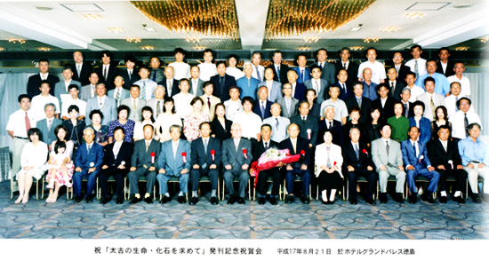 そして最後に話は前後しますが、本発刊1ヵ月後の2005年8月21日、発刊記念祝賀会が行われました。これは懇意にさせていただいている徳島大学学芸学部 地学研究室OBの先生方(東明先生・近藤先生・大戸井先生)と、徳島西ライオンズクラブ会長の中江典彦氏、当研究会会員の横山泰造氏・和田益夫氏、私の叔父の伊藤正春などが発起人となり実現しました。