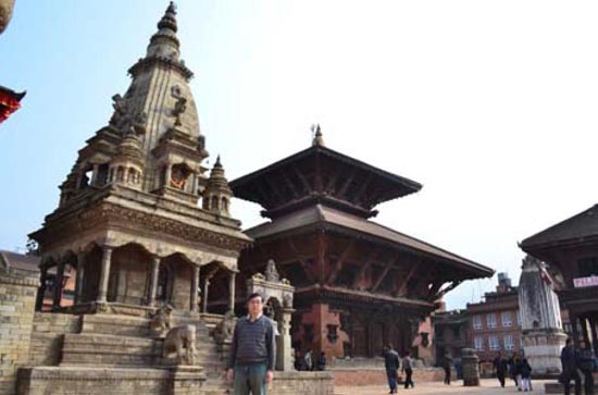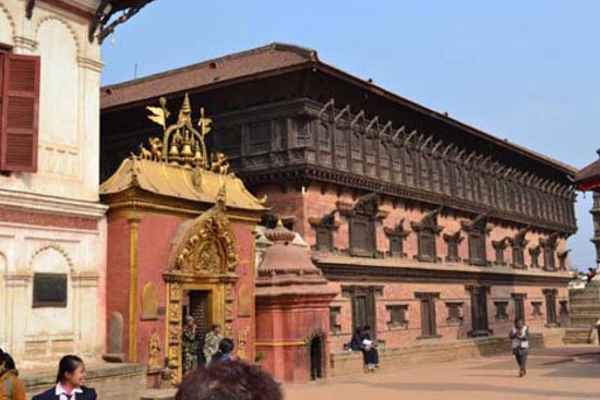 バクタプルは、カトマンドゥから12km 程東にある、3番目に大きいマッラ王朝時代(15~18 世紀)の中世の町である。映画「リトルブッダ」は、ここで撮影されたとのことである。ダンパール広場や旧王宮を見物した後、お土産屋さんがある細い路地を通ってダッタトラ ヤ寺院に向かった。途中、有名な鳩の彫刻のある建物を紹介してくれた。