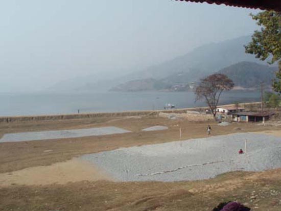 昼食は、フェワ湖畔にあるレストランと言うよりは、食堂であった。この食堂のテラスからは フェワ湖や周辺の山々がよく見え、山頂には白い寺院(日本山妙法寺)が見えた。また、山からはパラグライダーがゆったりと空中遊泳して降りて来て、湖畔に着陸していた。