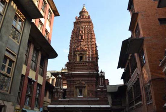 午後からは、世界遺産のパタン市内の中心にあるダンパール広場を見学した。この広場にある建物は、16~18 世紀にマッラ王朝の最盛期に造られたもので、東側は、旧王宮、西側は寺院が並んである。