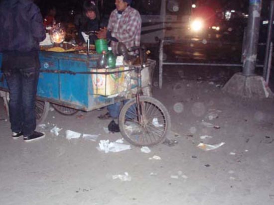 夕食後、例の3人でホテルの周辺を散歩した。既に商店は閉まっている所が多いが、屋台はまだ商売をしていた。客は屋台で買い物をして食べ終わるとその容器や紙をそのまま道路に捨てていた。道端にはごみが多い。屋台は、営業を終えると、ダンボールやごみを道端で燃やしていた。ごみの量を減らしているのだろう。多分、ごみの収集や焼却場などがないのであろう。そのため、ごみを道端に捨ててしまうのだと思う。この国では、今後、浄水、排水、ごみの収集、焼却など、衛生管理の教育や施設が必要であると思う。