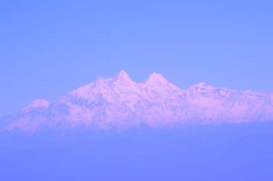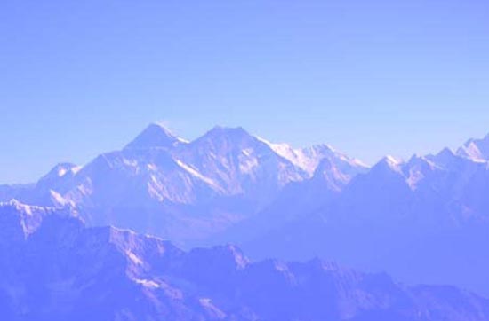 しばらくしてエベレスト連峰が左手に見えてくると、皆、子供のようにはしゃぎ、その景色を眺め、カメラやビデオで撮っていた。約20 分後、左手に大きな三角形の山が見えてきた。アテンダントが乗客を順番に操縦席に案内し、そこから写真を撮らせてくれた。