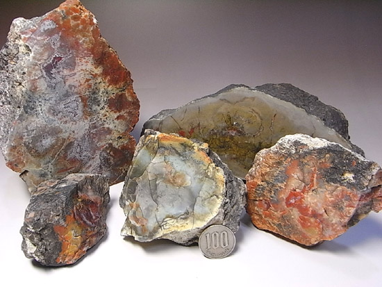 15-10センチの切断・研磨された美しいカミナリ竜のウンチ 4つ[1億5000万年前]