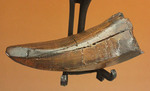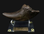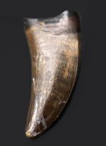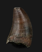 ティラノサウルスの歯は非常に太く長いのが特徴です。他の獣脚類に比べてもその特徴は明確で、切り裂くというよりは噛み砕くのに適していました。歯根(歯額の中に埋まっている部分)も非常に長かったという事実がよりこの特性を裏付けています。歯茎より上、つまり見えている部分が7-8cmにも関わらず、歯茎に埋まっている部分が22-23cmという化石が実際に発見されています。