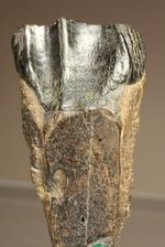 上下のアゴにびっしり一列に生えています。肉食ほどの鋭さはありませんが、肉よりもはるかに堅い中生代の植物をバリバリ食べるために、異常に堅くて太いです。上下の歯ではさみのようにすり切ってむさぼっていました。