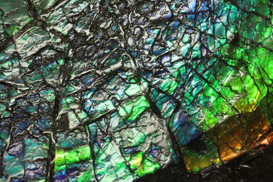 アンモライトが産出するのは、カナダ・アルバータ州のみです。この地域だけが、圧力・温度・周囲の岩石成分といった条件のすべてが絶妙に揃い、アンモナイトを約1億年かけて虹色へと変化させました。