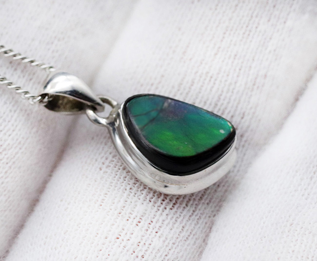 ready-to-use!ナチュラルなシェイプが愛らしい、宝石アンモライト(Ammolite)を使ったペンダントトップ。金具はスターリングシルバー。チェーン、革紐、ジュエリーケース付き/【al303】