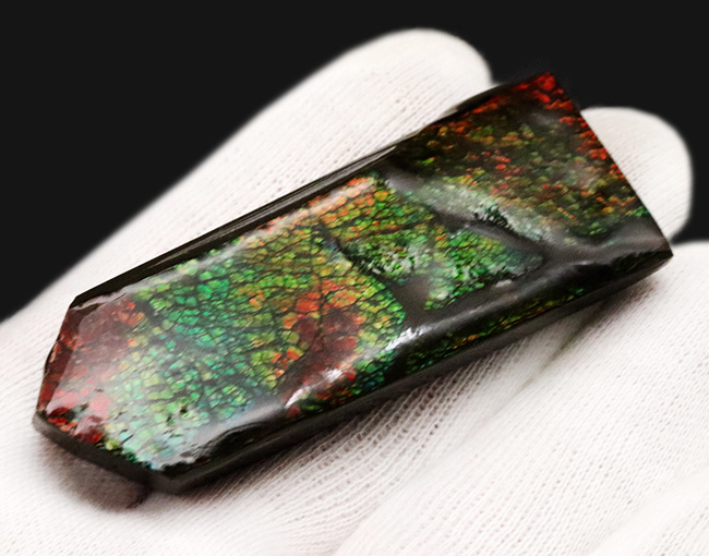 | 学名 | グリーンとオレンジを楽しめる、カナダ・アルバータ州で採集された宝石、アンモライト(Ammolite)のピース |