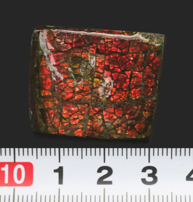 | 学名 | レッドドラゴン!鮮やかな赤色を呈する、カナダ・アルバータ州産のアンモライト(Ammolite)のピース |